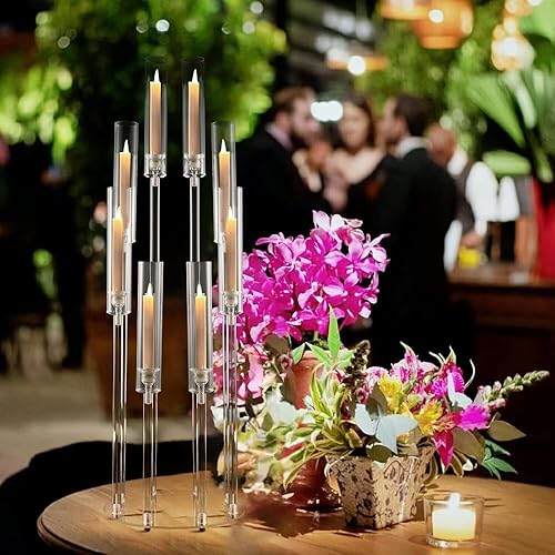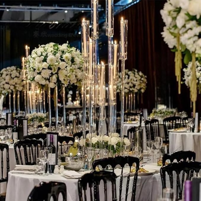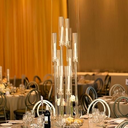 Bougeoir Transparent À 8 Branches pour Décoration De Mariage, Candélabre en Acrylique De 97 Cm De Haut avec Abat-Jour pour La Saint-Valentin, Centre De Table De Fête