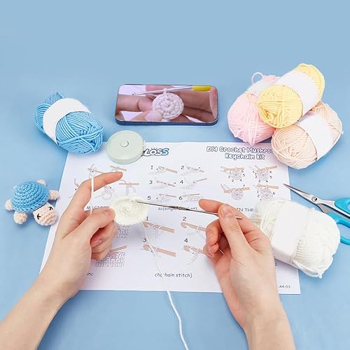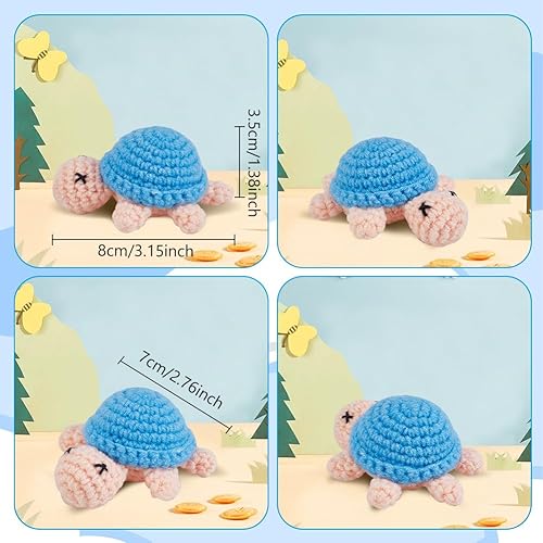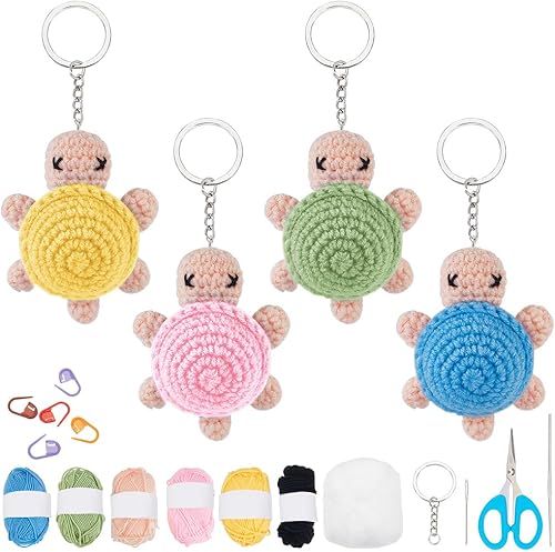 WEBEEDY 4 Ensemble DIY Crochet Tortue Porte Clés pour Débutants Kit de Crochet Tortue pour Adultes avec Vidéo Étape Par Étape Kit D'Artisanat Tortue Fait Main pour Cadeaux D'Anniversaire