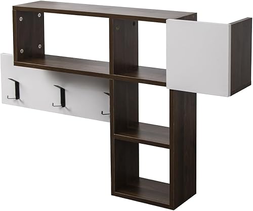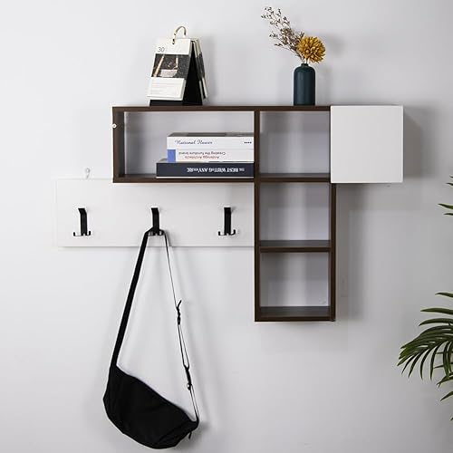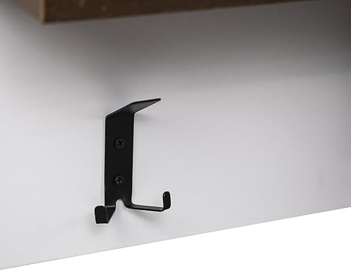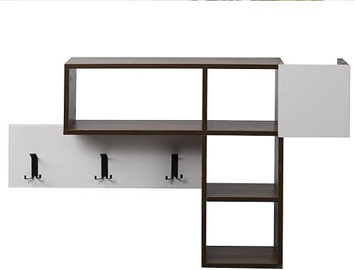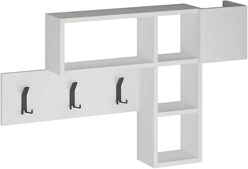 BAKAJI Porte-manteau mural avec 9 crochets suspendus vêtements et étagère bibliothèque 3 étagères en bois MDF bicolore design moderne, dimensions 99,5 x 61 x 15 cm (blanc)