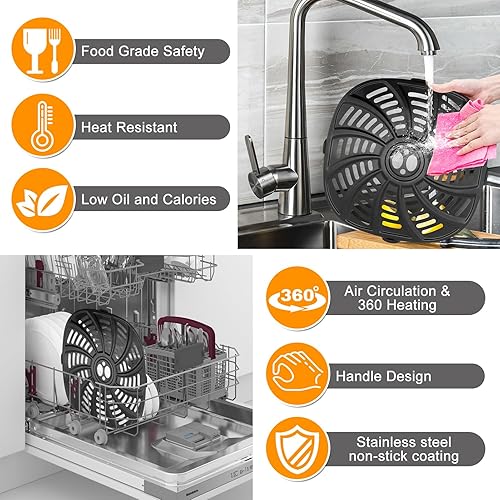 Air Fryer Grill Pan for Gourmia GAF798 GAF778 GAF716 7QT Air Fryer, Food Grade Nonstick 8.97''*8.97'' Air Fryer Replacement Parts Accessories Rack Tray Grill Plate Crisper Plate,Dishwasher Safe