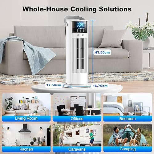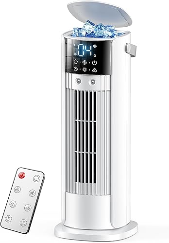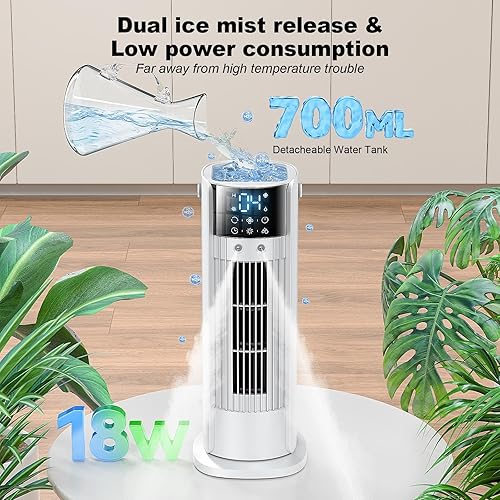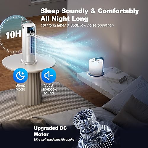 Climatiseur Mobile 5 en 1,Rafraichisseur d'Air Portable 700mL,Mode Tempête,Brise Naturelle 3D,Sommeil,Double Brumisation 10H Minuterie,90° Oscillation pour Chambre et Bureau