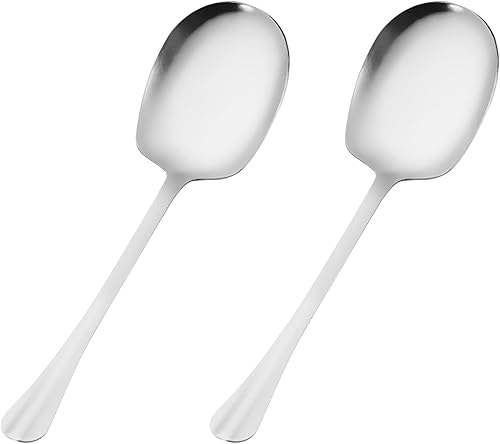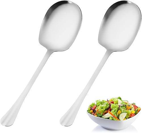 Lot de 2 cuillères de service en acier inoxydable de 22,5 cm pour servir la soupe, la salade, les pâtes, les longues poignées robustes pour un service confortable, parfait pour la cuisine et la maison