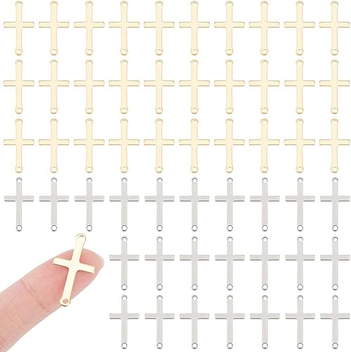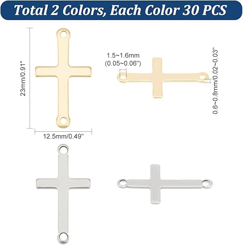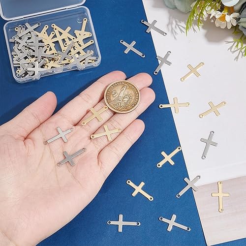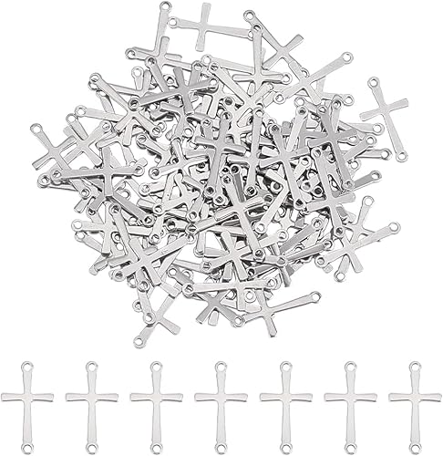 UNICRAFTALE 100 pièces 201 pendentifs Croix Acier Inoxydable 1.2 mm Connecteurs Croisés à Double Trou Breloque Pendentifs à Maillons Croisés Métal Pendentif de Boucle D'Oreille Crucifix pour de Bijoux