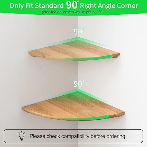 GIEANOO Étagère d’Angle Flottante en chêne Rustique avec extrémité Arrondie pour Haut-parleurs, Livres, décorations Étagère d’Angle en Bois, chêne, 30cm Rayon