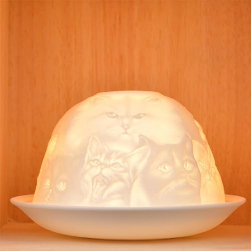 Nordic Light Photophore pour bougie chauffe-plat, abat-jour et assiette, motif chat, table de salle à manger, accessoires de décoration d'intérieur, en porcelaine, taille unique, blanc