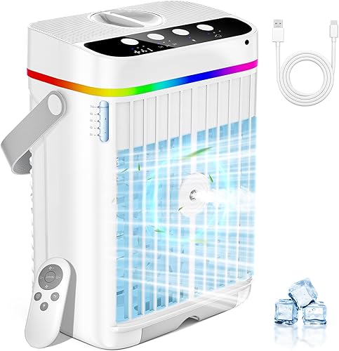 Climatiseur Mobile, Air Conditioner Portable Climatiseur Mobile Sans Evacuation, 4 en 1 climatiseurs portables avec Télécommande, Modes de Brume, Minuteries,LED 7 Colorées pour Maison, Bureau, Voyages