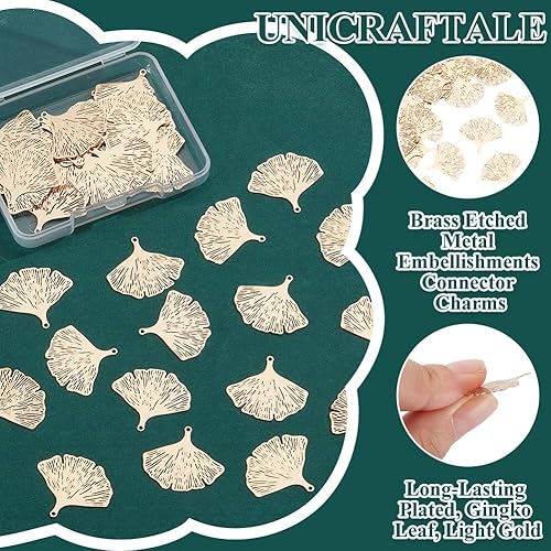 UNICRAFTALE 40pcs Breloque Feuille de Gingko Pendentif Feuille Or Embellissements Métal Breloques de Connecteur Breloques de Plantes Automne pour la Fabrication de Bijoux de Bracelets de Colliers