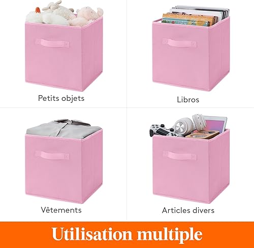 Lifewit Lot de 10 Cube de Rangement Tissu, Boite Rangement Pliables, Caisse Bac de Rangement avec Poignées, Panier et Boîtes de Rangement pour Vetements, Jouets, 26,5 x 26,5 x 28 cm, Rose