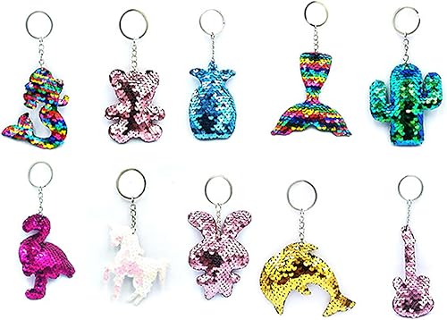 GIEEU Lot de 10 porte-clés réversibles à paillettes colorés pour enfants et adultes - Accessoires de sac à dos (10 styles)