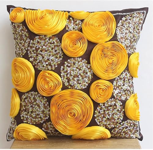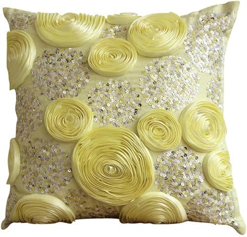 The HomeCentric Rose Euro Taies, 65x65 cm Euro Imposture, Pink Ribbon Rose Flower Et Paillettes Euro Taies, Soie Euro Imposture, Floral Moderne Shams Euro - Sweet Kisses