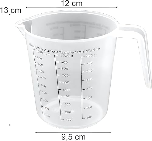 Retoo Verre doseur 1 l, incassable et passe au lave-vaisselle, transparent, échelle noire, verre doseur en plastique 1 l, grand verre doseur pour cuisine, maison, atelier et laboratoire, graduation
