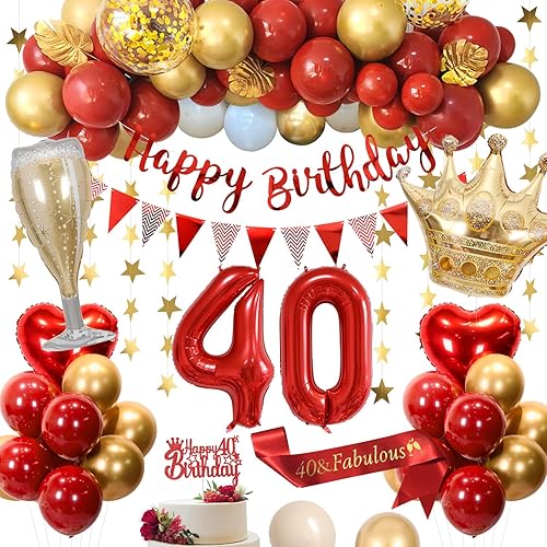 Décorations Anniversaire 18 ans, Décorations Anniversaire Rouges 18 ans pour Homme Femme Ballons Rouge Or Blanc Bannière HAPPY BIRTHDAY Ballons Numéro 18