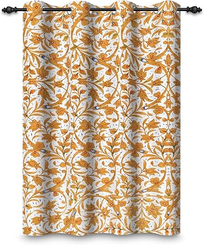 ggaimwf 107x160cm Rideau occultant Vintage Style Baroque Bleu Luxueux Motif sans Couture Rideaux œillets Isolation Thermique Traitements fenêtre à œillets pour Salon Chambre Salle à Manger 1 Panneau