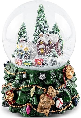 Musicbox Kingdom Boule à neige musicale de Noël 63052 en résine polymère Motif train de village d'hiver Multicolore 22,9 x 15,2 cm