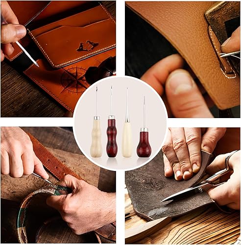 4 Alènes Cuir Manche Bois, 4 Poincon Cuir Avec Différentes Fonctions Outils Couture Cuir Poinçons Cuir Machine À Coudre Cuir Ensemble Perforatrice Cuir Pour Poinçons en Cuir pour Couture en Cuir DIY