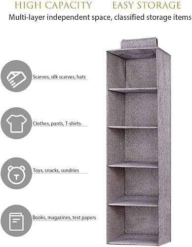 Eushine Étagère de penderie à Suspendre 2 Pièces, 5 Niveaux , Lavable Rangement Suspendu, Grande Capacité Organisateur de Vêtements avec Renfort Intérieur, 27x 27 x 100cm, Couleur Crème