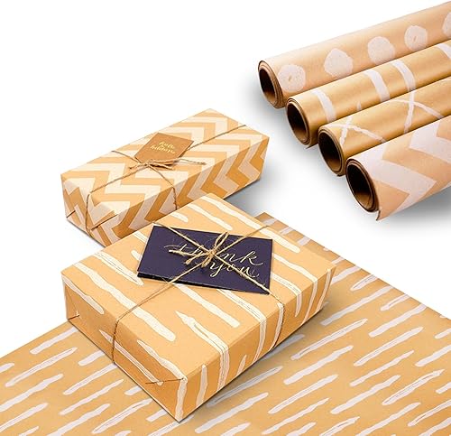 Papier Cadeau 43cm x 3M, 4 Rouleaux de Papier d'Emballage de Cadeau, Rouleau Papier Cadeau Anniversaire avec Rubans, Papier Cadeau Rouleau Anniversaire, pour Anniversaire, Noël, Vacances, Mariage