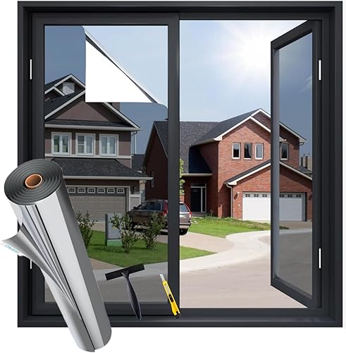 Laputaqua Film Fenetre Anti Regard, 76 * 200cm Film Miroir avec Kit de Pose, Anti Chaleur & UV Protection de la Vie Privée Brise Vue Fenêtre pour Fenêtre Bureau Maison (Argenté, 76X200 (cm))