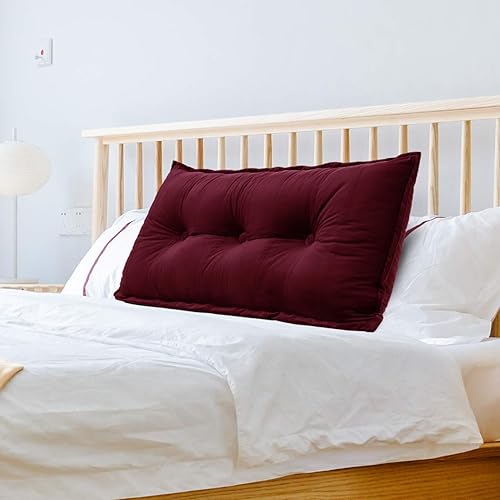 Johnear Coussin de Dossier pour canapé, Cale Dos Plage,Traversin Grand Coussin de Lecture en Velours, Oreiller Triangle Compensé Wedge, Coussin Lombaire, tête de lit, Coussin pour Jambes Rouge 120 cm