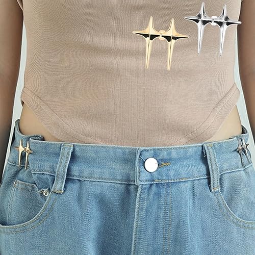 Resserrer la taille boutons étoile à quatre branches,Resserrement de la taille en étoile,Boutons de jeans épingles,Deux couleurs, jambe ajustable sans couture, ceinture cintrée.