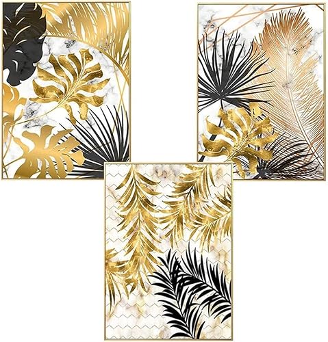 Instarry DIY 5D Diamond Painting Grand Format Tableau Triptyque Feuilles d'or Décoration Intérieure 120x60 cm
