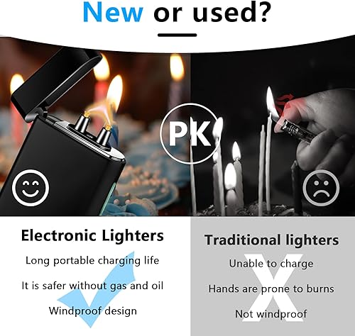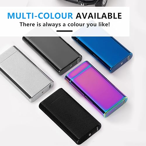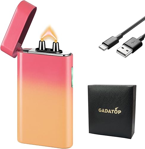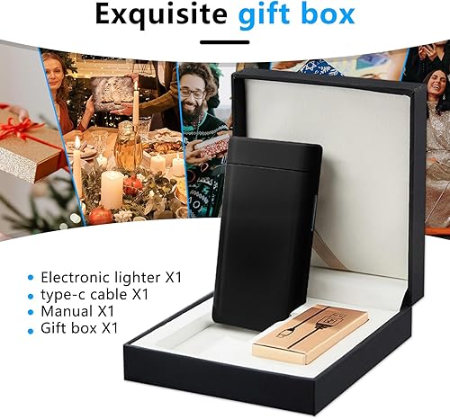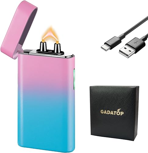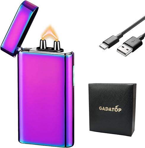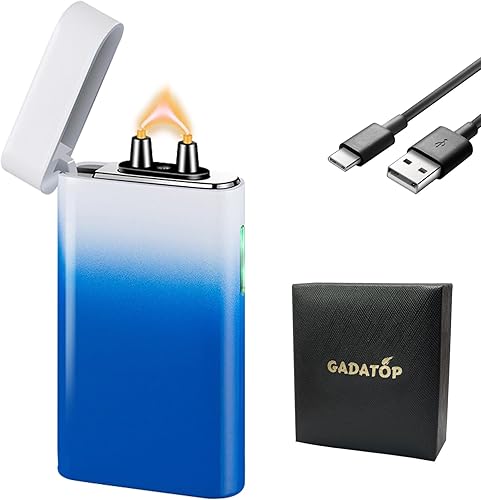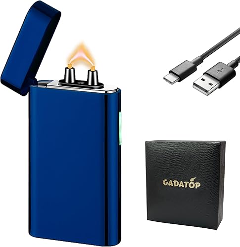 GADATOP briquet rechargeable briquets électriques briquet personnalisé briquets tempête métal avec affichage LED batterie luxe parfait pour barbecue camping et comme cadeau pour les anniversaires,Bleu
