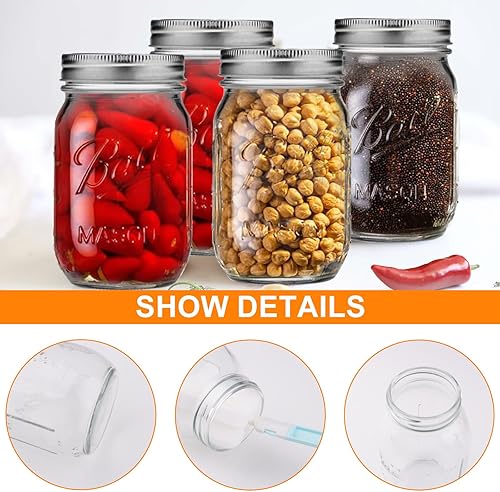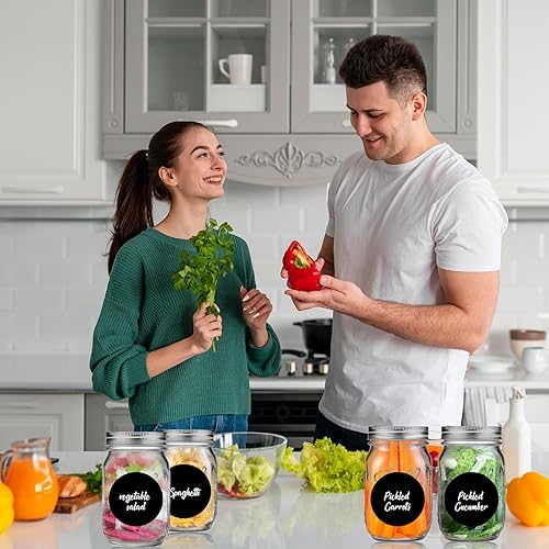 Gebiuhoo Bocaux Mason 500 ML avec Couvercles pour Meal Prep 4 PCS Pots à Confiture en Verre Bocaux de Conservation Alimentaire avec Étiquettes et Brosse Mason Jars pour Milkshake, Jus de Fruits