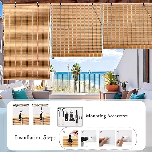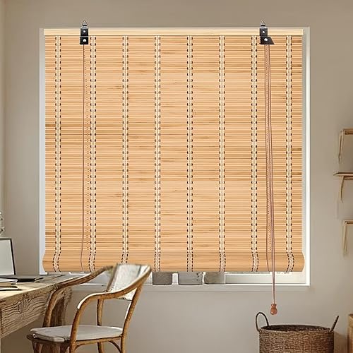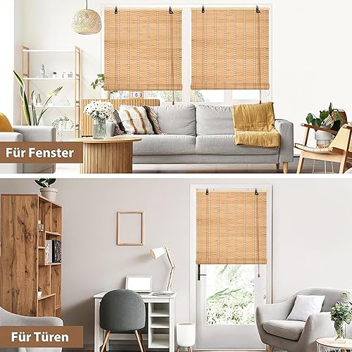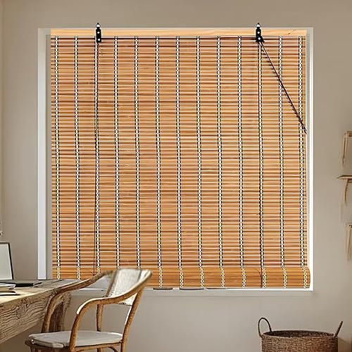 Store Enrouleur Bambou Store Bambou exterieu Protection Solaire,Stores à Rouleaux Romains Occultan avec Levage,Stores Enrouleur Tirage Latéral pour Fenêtre et Porte