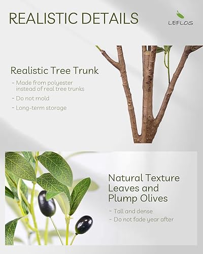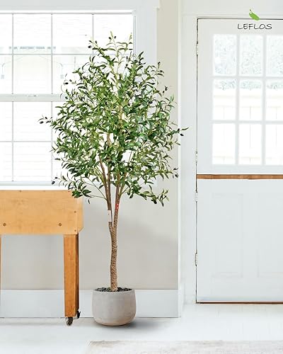 Leflos 180cm Oliviers artificiels denses, Arbres artificiels de Haut avec Pot, Plantes Tropicales en Soie Verte, Belles pour la Maison, Le Bureau et d'autres espaces intérieurs, 1pac