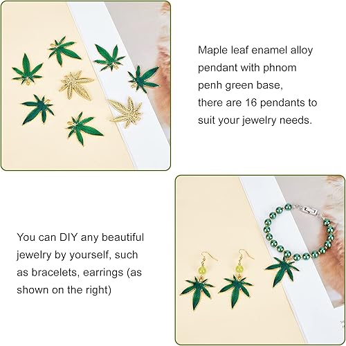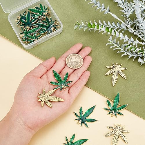 SUPERFINDINGS 16 Pcs 2 Couleurs Pendentifs Feuille D'Érable Pot Médical Feuilles D'Arbre de Cannabis Charmes Pendentifs Alliage Pendentifs en Émail pour Boucle D'Oreille Collier Fabrication de Bijoux
