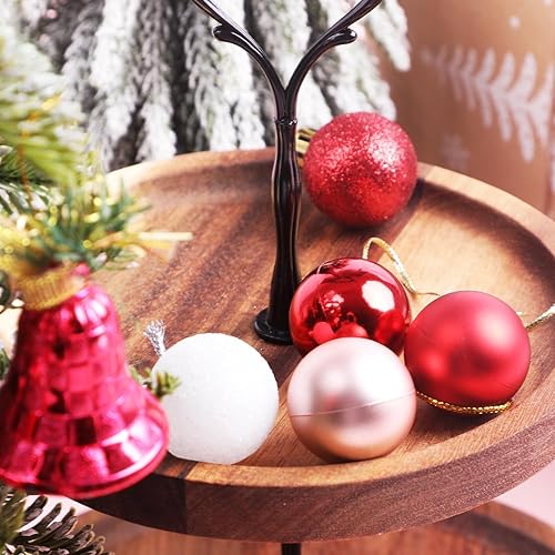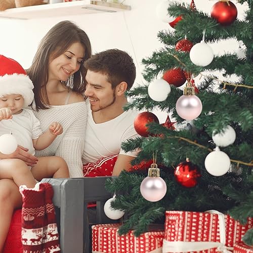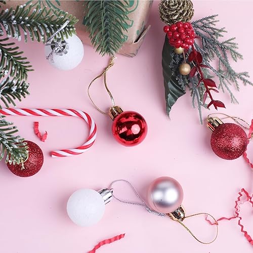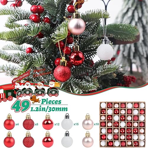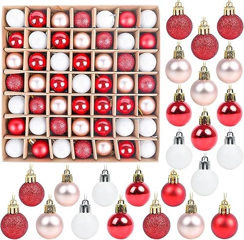 DERAYEE Boules Noël Rouge,Blanc,Or Rose,Décoration Noël Intérieur,Kit Kecoration Sapin de Noel,Lot de 49 Boules de Noël pour Sapin,Boule de Noël