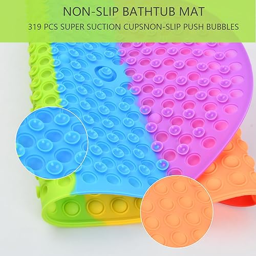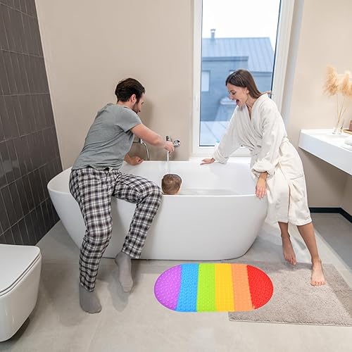 Volumoon Tapis de Baignoire Antidérapant,Tapis de Baignoire Arc-en-Ciel, Tapis de Bain de Baignoire Antidérapant avec Les Ventouses Puissantes, Résistant à la Moisissure Lavable en Machine