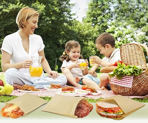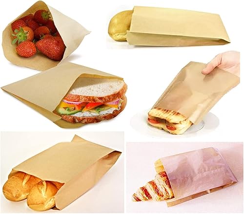 Sacs papier kraft brun, Sans Poignée. Sac baguette pain sandwich bonbons pâtisserie biscuits fruits collation déjeuner mariage cadeau décor (25x14cm 200sacs)