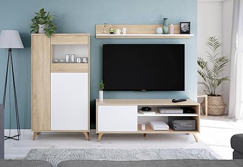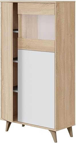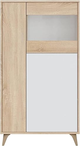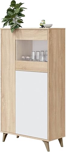 Dmora - Vitrine Atlanta, Vitrine moderne à 3 portes, Buffet pour salon ou salon, Buffet haut avec étagères, cm 77x33h142, Chêne et Blanc