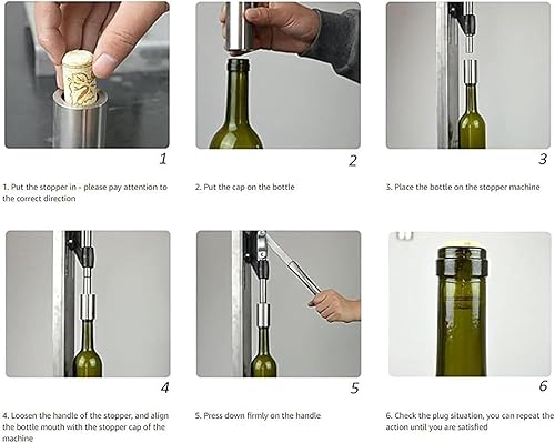 Boucheuse manuelle en acier inoxydable, machine à boucher les bouteilles de vin, avec base antidérapante, avec 2 manchons POM, hauteur réglable 8-42 cm, plage de bouchage diamètre 20-22 mm, hauteur 30