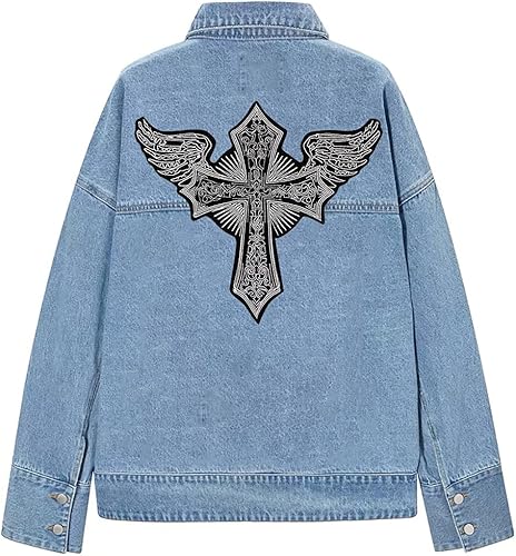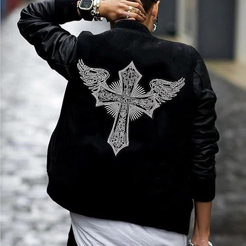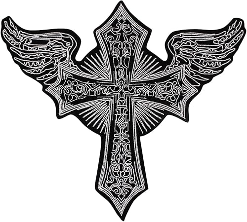 Écusson brodé en forme de croix avec ailes d'ange, veste, gilet, costume, motard, à coudre ou à repasser