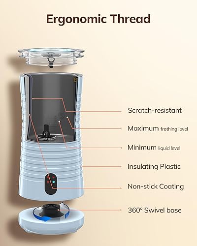 Morpilot Mousseur à Lait Électrique 4 en 1, 600W 500ml Milk Frother à Mousse de Lait Chaude et Froide et Lait Chaud, Emulsionneur de Lait Divisé pour Coffee Latte Cappuccino