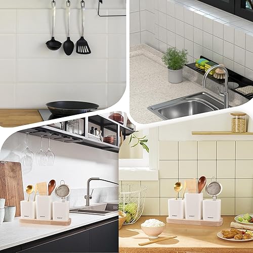 Porte-ustensiles de cuisine pour plan de travail, étagère de drainage, organisateur pour ustensiles de cuisine, organiseur pour ustensiles de cuisine avec plusieurs compartiments, boîte de rangement
