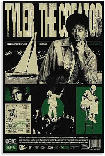 Tayuote Tyler The Creator Poster mural vintage avec collage de musique de rappeur Chromakopia - Décoration murale pour chambre à coucher - 30 x 45 cm