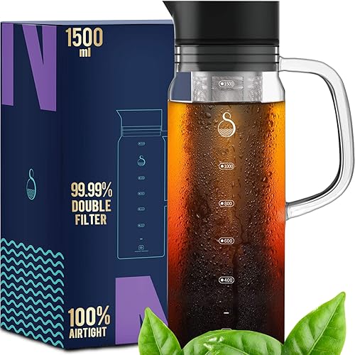 SAMBANGAN Cafetière Manuelle avec Infuseur pour Café Froid ou Cold Brew Coffee de Machine pour Amateurs de Café Infusé à Froid (1500ml)