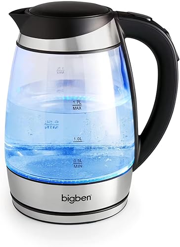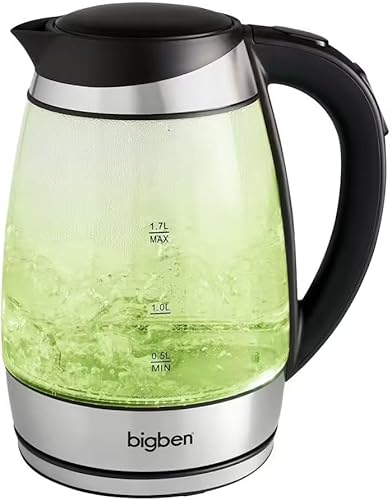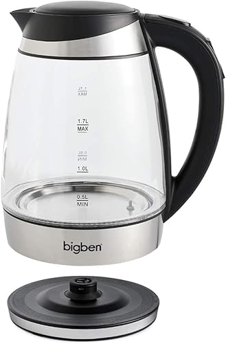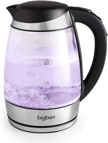 BigBen Bouilloire Électrique Verre 1,7L - 5 Températures Réglables 50-100°C - LED Multicolore - Filtre Anticalcaire - Base 360° - 2200W - K683