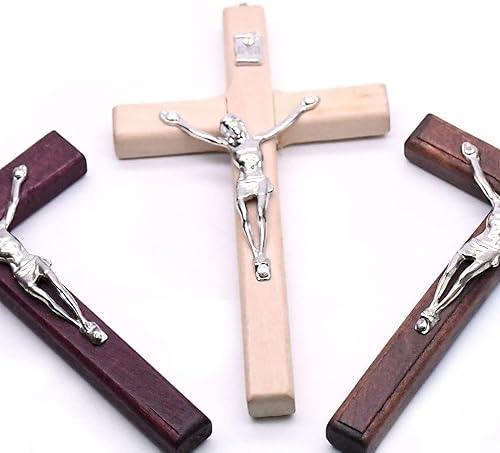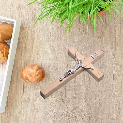 Croix Murale en Bois jésus catholique Plaque Artisanale Croix Murale Crucifix Mural Suspendu avec Trou pour décoration Murale d'église à la Maison