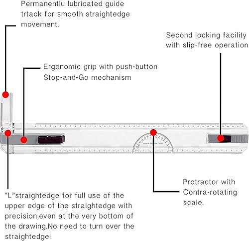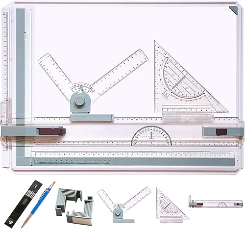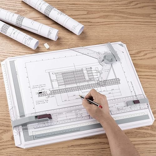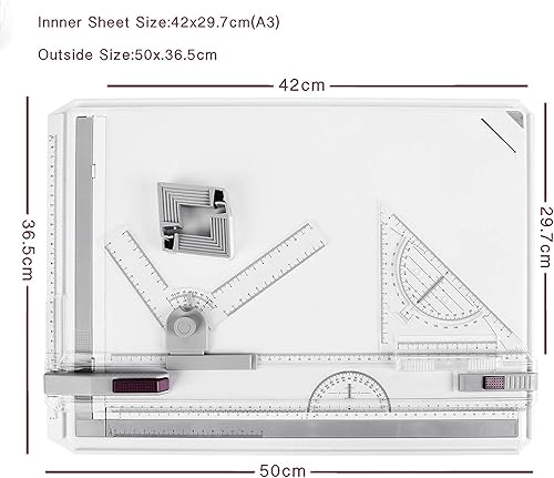 Frylr Planche à Dessin A3 Drawing Board Metric Table à Dessin avec Mouvement Parallele Mécanique 50 x 36,5 cm