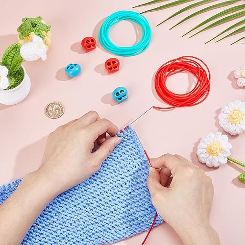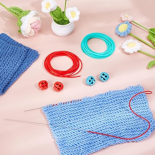 NBEADS 6 m Cordons de Maintien de Couture, 2mm Tube Creux en Caoutchouc Cordon de Tricot avec 4 butées D'Aiguilles à Tricoter et Boîte pour Maintenir Les Mailles Bracelets Colliers Perles 2 Couleurs