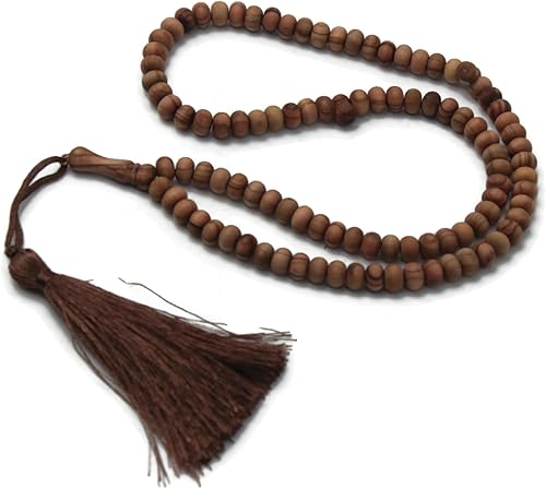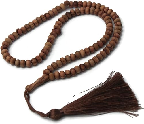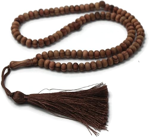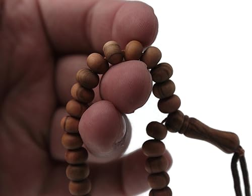 Chapelet en bois de d'olivier fait à la main avec 99 perles Tasbeeh Misbaha - Cadeau islamique Tasbih - 5 x 7 mm - Petite taille marron foncé