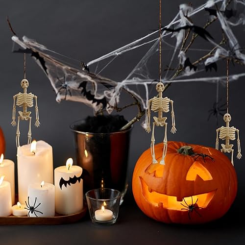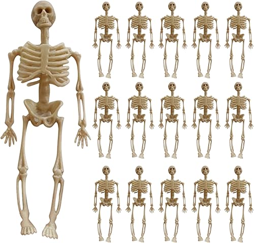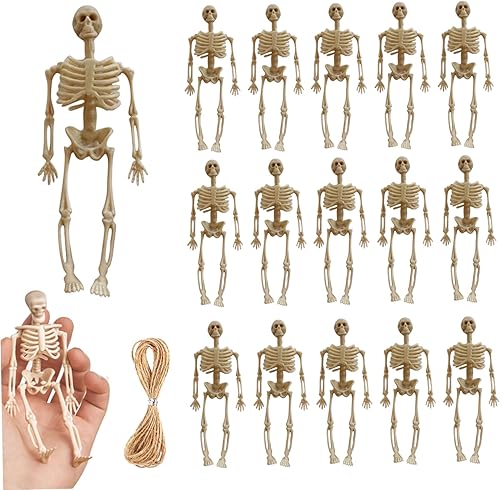 Décoration de mini figurine de squelette d'Halloween, 16 pièces de 15,2 cm, décorations de squelette à suspendre, petits ornements de squelette plastique pour Halloween, Noël, décoration d'intérieur