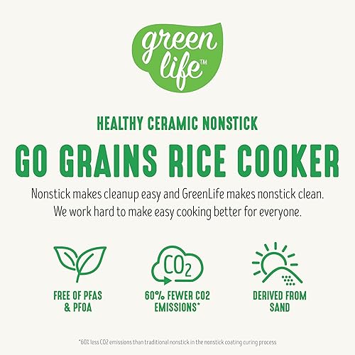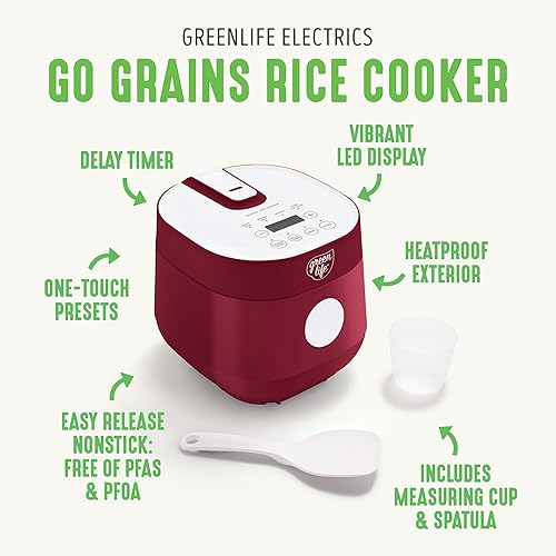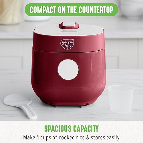 GreenLife Cocotte à riz numérique 4 tasses, sans PFAS et PFOA, en céramique amovible, passe au lave-vaisselle, aux haricots d'avoine de cuisine saine et plus encore, préréglages automatiques