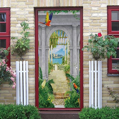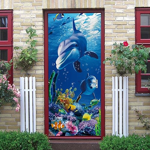 LuSeven sticker de porte Dauphin animal corail océan 50x125cm(19.68 inches * 49.21 inches) Imperméable Stickers Stickers De Porte Chambre À Coucher De Salon De 3D Moderne Détachable Autocollants De Po