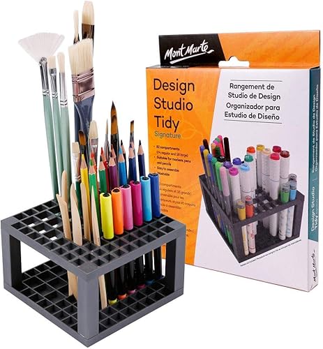 Mont Marte Porte Pinceau - 82 compartiments - 18 Compartiments extra larges pour les Marqueurs - Porte-Stylo Idéal pour stocker et ranger Stylos, Brosses, Marqueurs et Accessoires