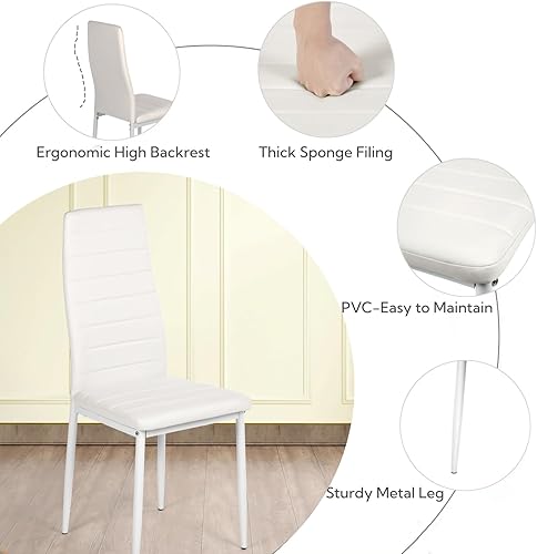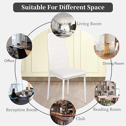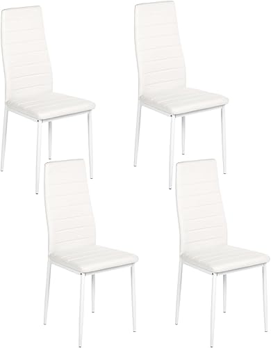 GOKHOMX Lot de 4 Chaises de Salle à Manger Modernes, Chaises de Cuisine avec Pieds en Métal Chaise Salle a Manger Rembourrées en Simili Cuir pour Salles à Manger Cuisine Restaurant (Blanche)